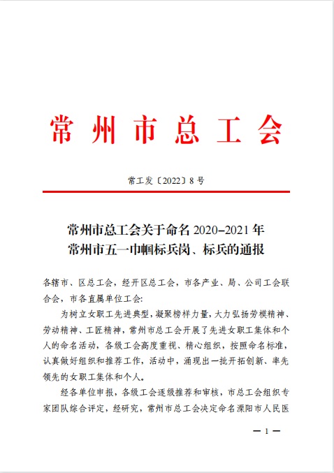 近日,常州市总工会开展的先进女职工集体和个人的命名活动揭晓。我校再传喜讯:经济与管理学院管理工程系荣膺“2020-2021年常州市五一巾帼标兵岗”称号。