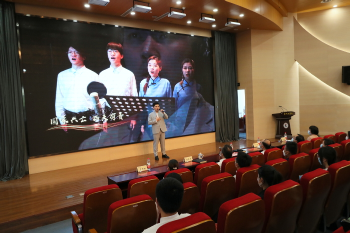 随后,马克思主义学院高玄博士讲授《张太雷:谋将来永远幸福》微团课。 他从进取求索、勇立潮头、百年团史、求学问远富贵、英勇斗争五个方面,介绍这位常州热血青年在救国救世、为人民奋斗的道路上一路奔走的事迹。师范学院徐忆巍博士深情演唱原创歌曲《雷》,此歌以张太雷经典语录为词,传承红色基因,激励常工学子奋发图强、报效祖国。