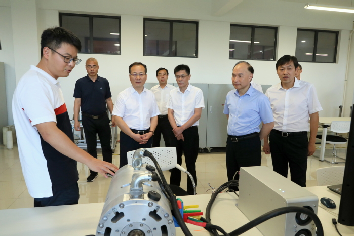 李文宏一行实地走访了我校特种电机研究与应用实验室、“常州三杰”文化广场、产教融合大楼、碳纤维新材料产业学院和程喜藏品馆,了解学校的办学定位、人才培养、学科建设、社会服务、国际交流与合作、产教融合等方面情况。