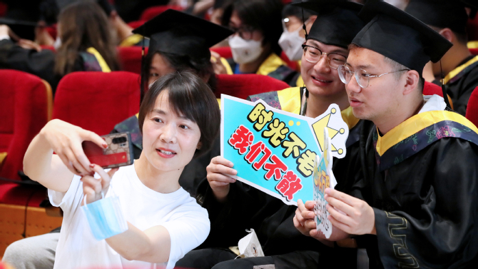 典礼开始前,一帧帧闪过的画面汇聚成视频《我们的大学时光》。这是成长的定格,是记忆的载体,更是向未来的力量,成为毕业生们的特殊毕业礼。