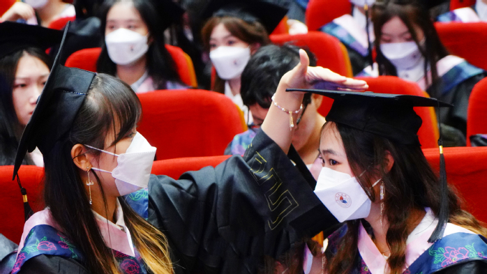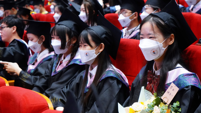 为方便不能到现场的毕业生、家长、教师和校友观看,本次毕业典礼采用线上线下同步直播方式进行。学校还暖心为毕业生制作了纪念口罩。