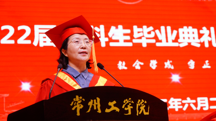青春永不谢幕,青年终要远航。校党委副书记、校长汤正华以《青春逢盛世 奋斗正当时》为题,为毕业生上“常工最后一课”和“新征程第一课”。他和毕业生一起回眸四年来与党、与国家、与时代同心同向同行拼搏奋斗的光影,以例带面,为毕业生克服疫情等不利因素、以新时代青年的责任担当迎来拨穗正冠的高光时刻点赞。汤正华殷切寄语毕业生:立德修身,止于至善。突破“小我”藩篱,明确“大我”定位,提升“无我”境界;拥有一份包容的心态,把“大志向”与“小幸福”落实到工作上,把责任与担当分解到每一天,办好每件事、站好每班岗,在奉献集体、帮助他人中收获幸福;自觉践行弘扬社会主义核心价值观,明大德、守公德、严私德,做一个有志气、有骨气、有正气、有底气的现代青年。怀揣梦想,壮志凌云。与国家、民族休戚与共,以“国家兴亡、匹夫有责”的情怀,自觉将个人理想融入到国家富强、民族振兴、人民幸福的历史洪流中,勇挑报效祖国的重担,成为有使命感的常工人。脚踏实地,踔厉奋发。走入社会后,要放下身段,虚心向前辈求教、与身边同事交流,不断更新观念、丰富知识,将增长本领作为青春搏击的能量;要始终保持思考的习惯,不断拓展思想维度和认知边界,善创造敢挑战,主动在打硬仗、扛重活、攻难关的实践历练中,练就高强本领。