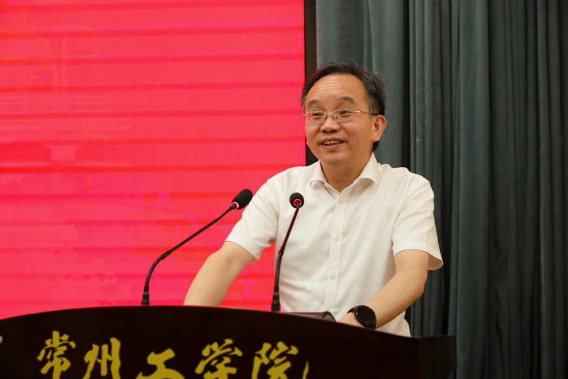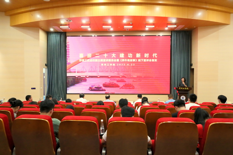 6月23日下午,“喜迎二十大 建功新时代”劳模工匠进校园主题宣讲报告会暨《奔牛有故事》线下宣讲会在我校举行。常州市总工会党组书记、副主席刘卫国,副主席宣建强,奔牛镇党委书记王华国,全国人大代表、江苏省劳模张道衡,我校党委书记曹雨平、副校长汪群,以及常州市总工会相关领导,我校相关职能部门、二级学院领导、相关师生代表等近百人参加会议。汪群主持会议。