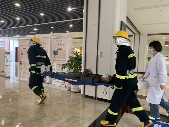 发现“火情”后,图书馆工作人员迅速按下消防报警按钮,消防广播、应急照明灯随即发出紧急疏散信号。现场工作人员根据应急预案,组织读者按指定的疏散路径进行有序撤离;救援组、警戒组人员接到火灾报警信号后火速赶到现场进行灭火、救援,同时协助疏散、搜寻被困人员;馆内电梯主电源也自动切断,正在乘坐电梯的2名读者在电梯维保人员协助下降至一楼后安全撤离;所有人员在火警发生后3分钟内全部有序撤离到馆外的紧急集合点。演练后,保卫处、后勤管理处还对现场人员进行窒息人员心肺复苏紧急救护、消防知识培训,并组织实操练习。