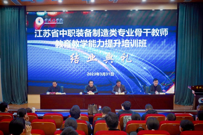 3月31日上午,江苏省中职装备制造类专业骨干教师教育教学能力提升培训班交流总结暨结业典礼在我校行政管理中心二楼报告厅举行。常州工学院继续教育学院副院长印富贵、航空与机械工程学院/飞行学院党委书记尹飞鸿、副院长何亚峰、培训班班主任史乃煜博士及全体参训学员参加了会议。会议由何亚峰主持。