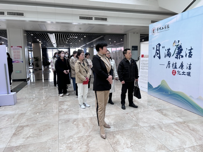 活动中,全体党员跟随现场讲解员,依次深入学习“月”满廉洁、“新”动廉洁、“范”领廉洁、“书”倡廉洁四个展区的教育内容。四个展区通过书法、绘画、摄影、视频等多种形式全面展示常州工学院各级、各部门廉政文化建设成果,成果主题突出、特色鲜明、内涵丰富。党员通过现场学习,从思想上固本培元,提高了党性觉悟,增强防腐拒变能力,在今后的工作生活中砥砺政治品格,夯实清正廉洁的思想根基。