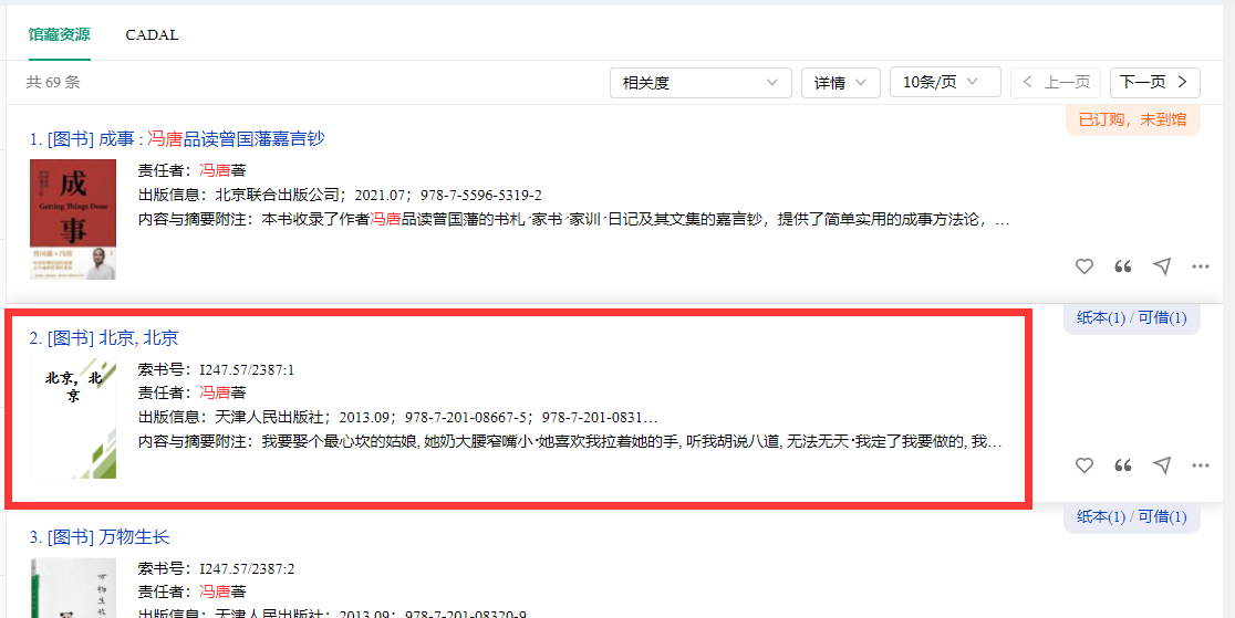 2.1 通过检索系统,检索到所需图书,点击书名进入详情页。