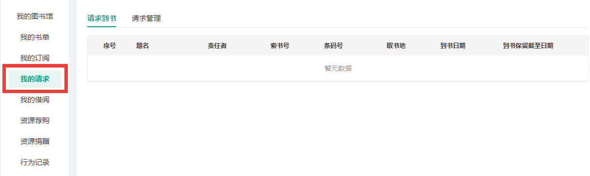 2.3 请求完成后,可以关注右上角的“个人中心”里“我的请求”。一般7个工作日内到达取书地,请了解委托借阅进展,并及时完成借阅流程。