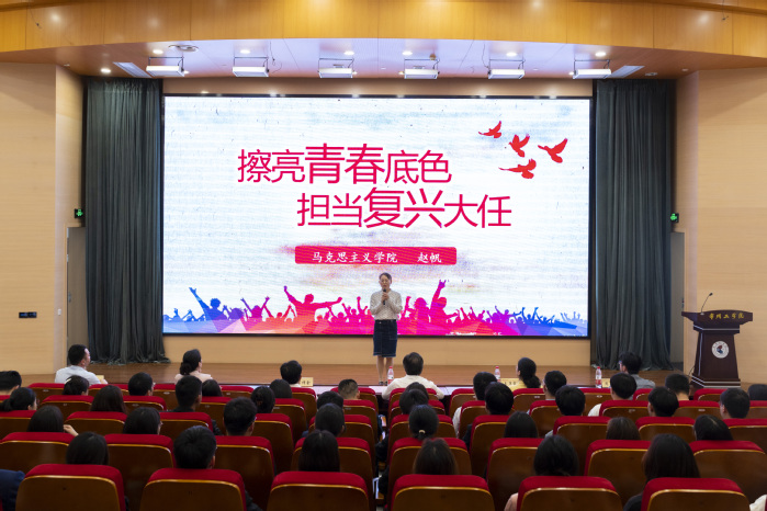 会上,马克思主义学院青年教师赵帆讲授《擦亮青春底色,担当复兴大任》微团课。她带领大家重温习近平总书记青年时期扎根陕北黄土高原七年的知青岁月,引导同学们树立矢志不渝的理想追求和植根爱国为民的家国情怀,做勇于奋斗、甘于奉献、脚踏实地的时代新人。