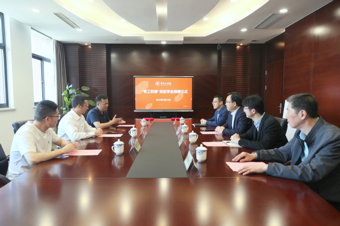 王传金在致辞时简要介绍了我校的办学历史、发展历程、奖助学金设置及近年来产教融合工作开展情况,感谢常州市和普电子科技有限公司对我校建设发展的关心、对我校贫困学生的关爱。他希望以此为契机,进一步加强与企业的合作,创新资助育人模式,通过开展校企合作、企业家进课堂等途径,促进受资助学生的能力提升和素质发展,促进扶困与扶志、扶智的进一步融合。