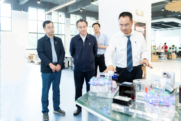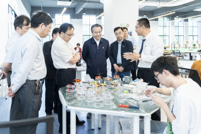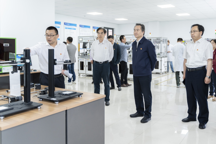 校领导先后走访机器视觉产业学院、新能源汽车产业学院、智慧建造产业学院、智能制造产业学院、碳纤维新材料产业学院和创新创业学院,实地勘察相关实验室建设情况,详细了解各产业学院的目标定位、社会服务、建设成效及特色优势等情况。