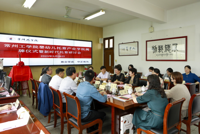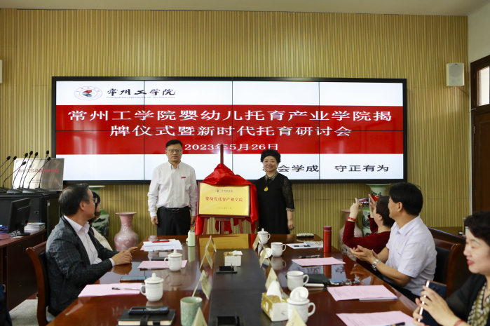 5月26日,我校婴幼儿托育产业学院成立。校长张兵和原常州市政协科教文卫主任、校友沈梅为之揭牌。原校纪委书记陈志伟、常州市卫健委家庭与发展处处长缪岳平、市教育局基教处副处长孙静、天宁区卫健委副书记俞霞芬、天宁区教育局副局长戴霞、武进区教育局副局长王荀慧、我校教务处副处长廖连莹、师范学院党政领导和教师代表,以及常州市幼儿园及托育机构负责人参加揭牌仪式暨新时代托育研讨会。会议由师范学院党委书记肖华主持。