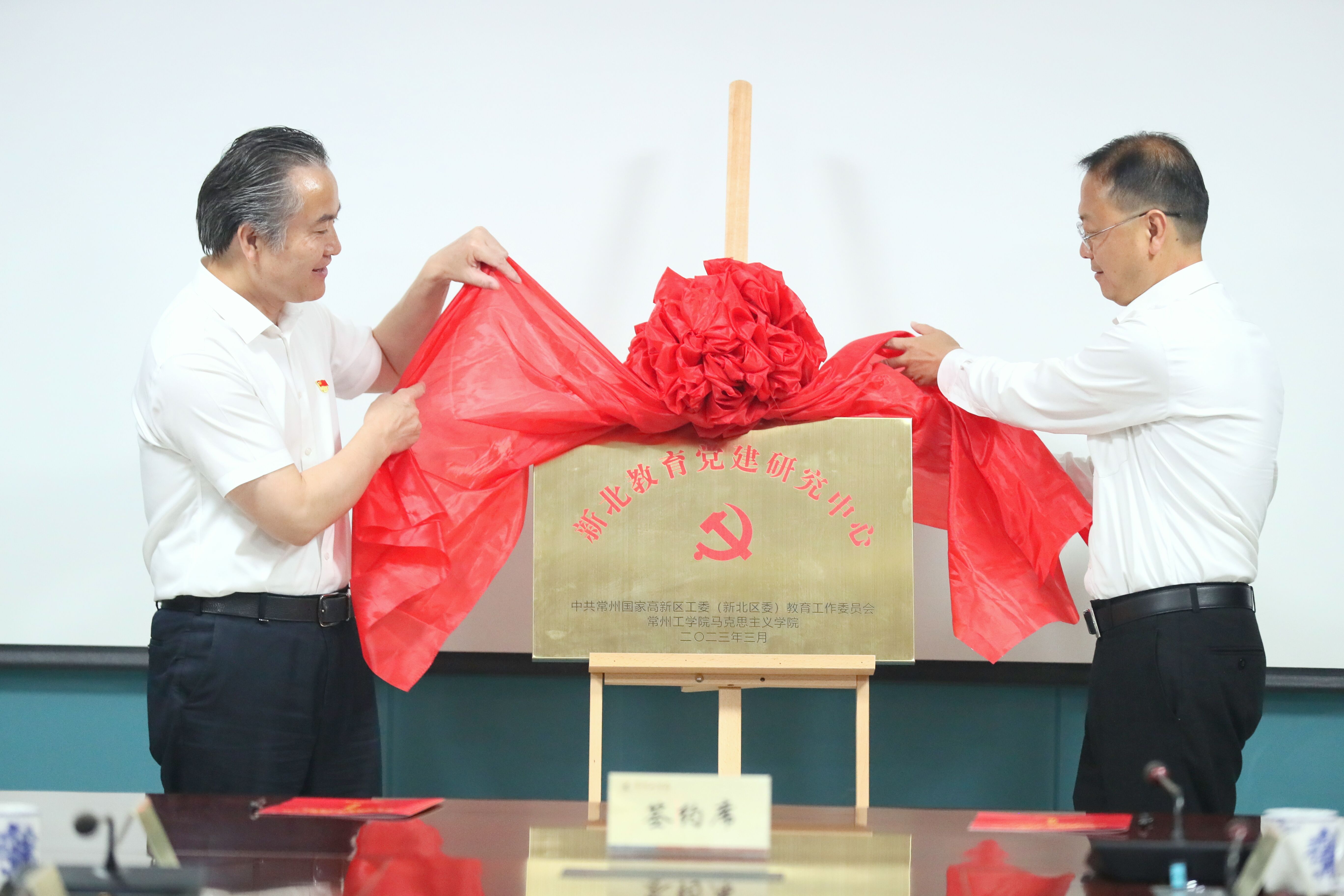 6月7日,新北教育党建研究中心(以下简称中心)揭牌签约仪式在我校举行。校党委书记汤正华,常州国家高新区党工委委员、新北区委常委、组织部部长吴寅为中心揭牌。
