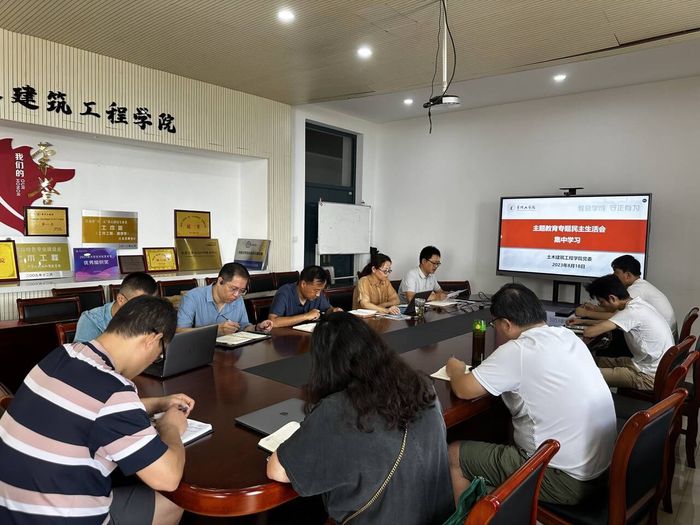 又讯 按照校党委关于开好主题教育专题民主生活会的部署要求,8月18日,土木建筑工程学院党委举行集中学习研讨会,深入学习习近平总书记关于党的建设的重要思想、关于严肃党内政治生活的重要讲话和重要指示批示精神,习近平总书记关于以学铸魂、以学增智、以学正风、以学促干等重要论述,学习习近平总书记关于教育的重要论述以及党章、新形势下党内政治生活若干准则等党内法规,进一步深化思想认识、增强政治自觉,为开好专题民主生活会打牢思想基础。