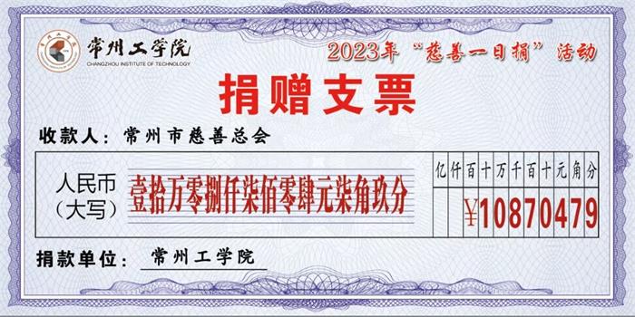 9月5日,是我国第八个“中华慈善日”。我校教职工踊跃参加“慈善一日捐”活动,捐献总额为壹拾万零捌仟柒佰零肆元柒角玖分(108704.79元)的善款,以实际行动深入贯彻习近平总书记关于促进慈善事业发展的重要指示精神,积极传播真善美、传递正能量,带动更多身边人向上向善,促进常州慈善事业持续健康繁荣发展。