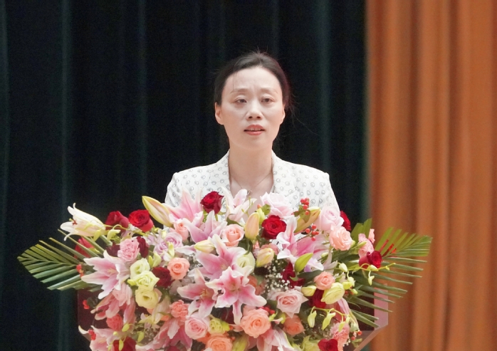 荣休教师代表李卫红动情回顾30年的常工生涯,用感恩、感谢、感受和不舍,表达对学校的深情,指出成为一名好老师的路径。她说,学校是我们的根,是我们永远牵挂的地方。并诚挚祝福学校越办越好。