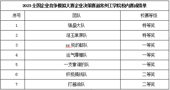 根据《关于举办“2023年全国企业竞争模拟大赛校内选拔赛”的通知》要求,组织决策赛道20支团队进行企业运营模拟大赛校内选拔,共评选出特等奖2项、一等奖3项、二等奖2项,具体拟获奖名单如下。