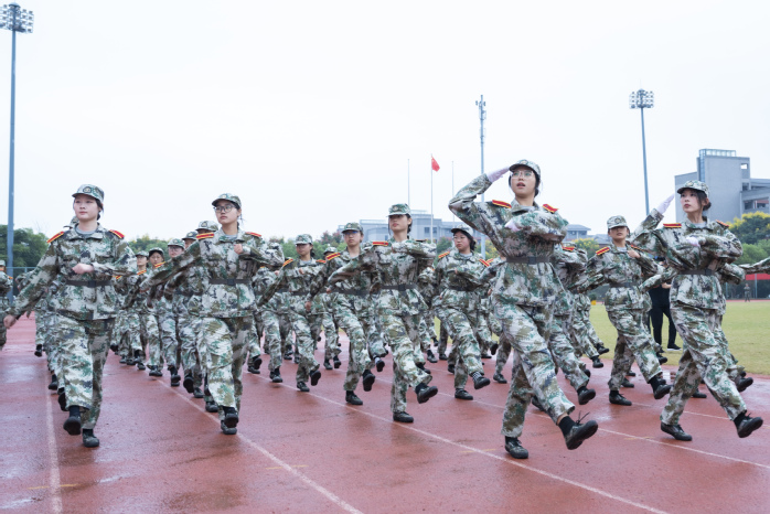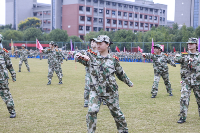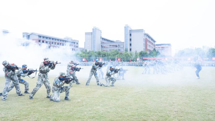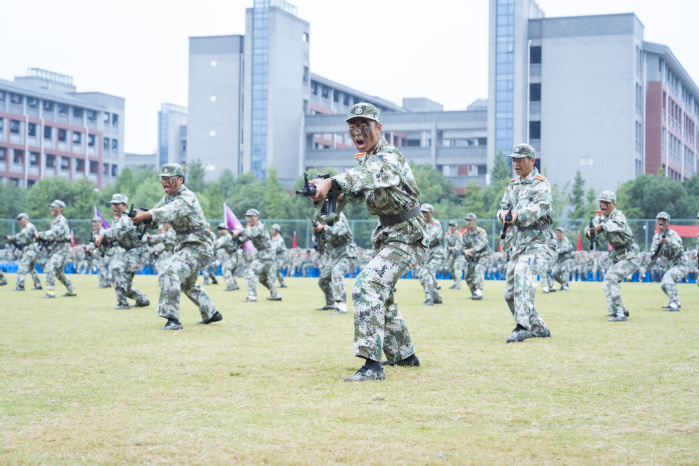 典礼后,进行了精彩的军训教学成果展示。国旗班方阵、女子方阵、男子方阵的分列式表演,刺杀操、匕首操、擒敌拳和战术等科目表演,生动展示了新生经军训洗礼练就的品格、虽经风雨不言放弃的精神。