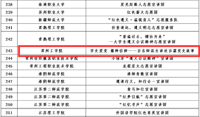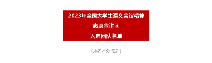 近日,团中央青年志愿者行动指导中心、中共遵义市委、共青团贵州省委发布2023年全国大学生遵义会议精神志愿宣讲团入选团队名单,我校师范学院“学史爱党 播种信仰——百名师范生讲述百篇党史故事”团队成功入选。