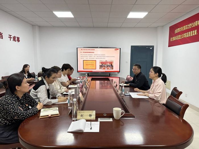 王萍霞强调,马克思主义学院要加强思政课教师队伍建设,着力提升思政课程质量,增强思想政治教育的实效。要对标《马克思主义学院建设标准(2023年版)》,全面加强马克思主义学院建设,着力打造马克思主义理论教育教学坚强阵地,积极推进思想政治教育研究与思政课教学改革,打造高质量思想政治教育工作精品。