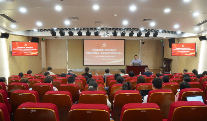 10月23日,副校长苍玉权为人文学院、国际交流学院、继续教育学院、创新创业学院全体科层以上干部宣讲学校第四次党代会精神。