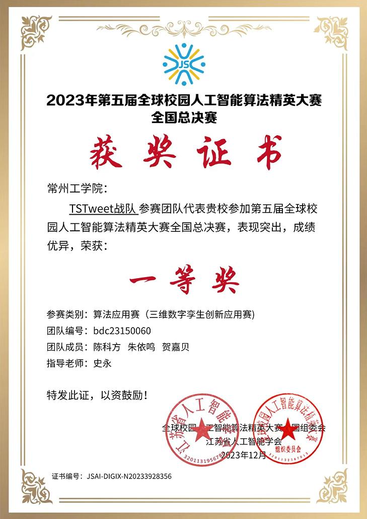 近日,第五届全球校园人工智能算法精英大赛全国总决赛在河海大学举办。经过激烈角逐,我校在“三维数字孪生”创新应用赛道获一等奖1项、二等奖1项、三等奖2项,获奖数排名前列。