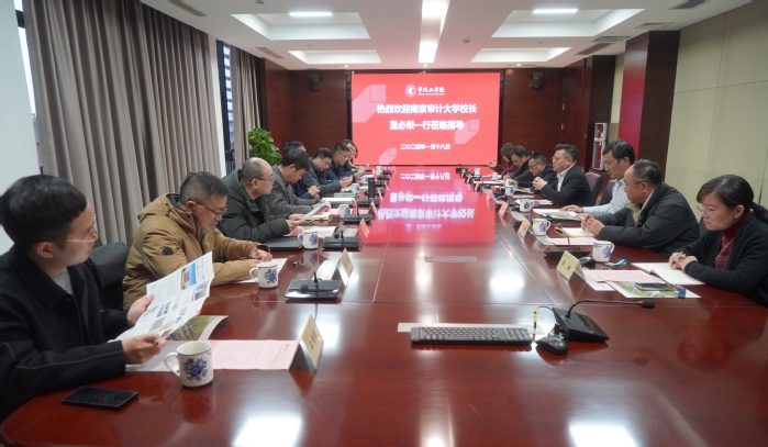 近日,南京审计大学校长董必荣一行来校调研。校长张兵、副校长苍玉权及相关职能部门负责人出席交流会。