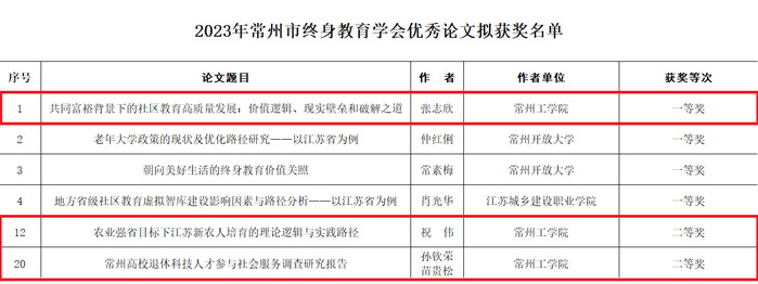 近日,2023年常州市终身教育学会优秀论文评选结果公布。我校荣获一等奖1篇、二等奖2篇。