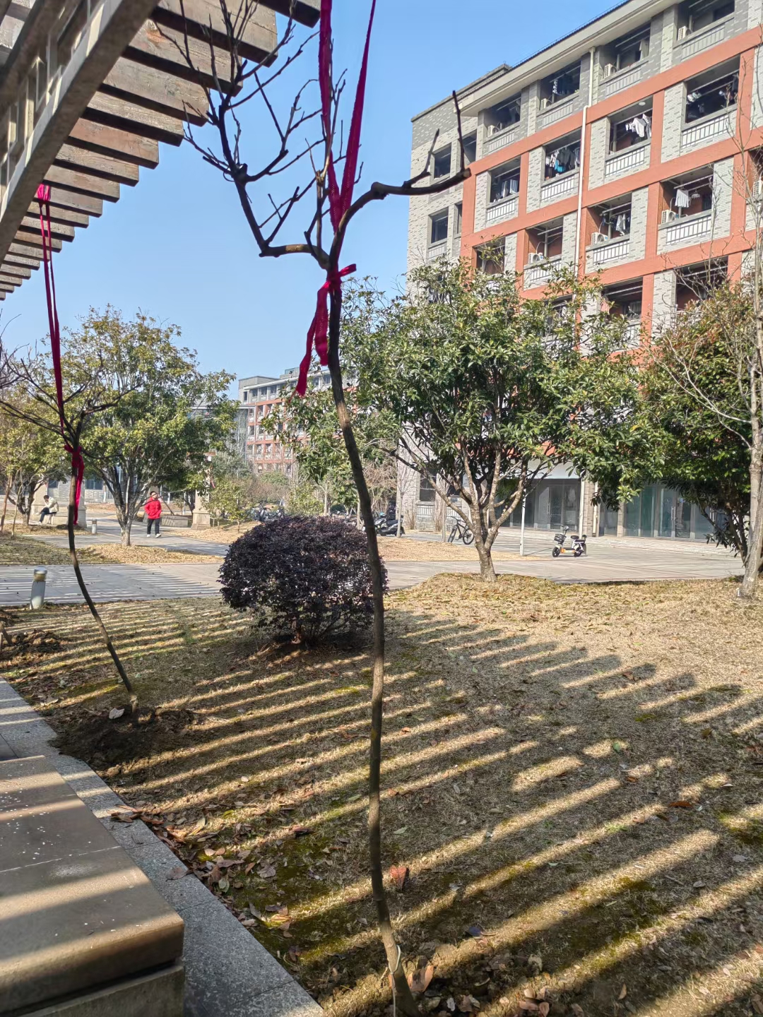 紫藤长廊来自电气信息工程学院1992级校友夏春笋、计算机信息工程学院1993级校友杨锡妹的捐赠。他们还同时捐赠了1棵古朴树。两位校友在常工求学时结缘,在菁菁校园里相知相恋,毕业后结为连理。他们并肩创业,风雨共度,携手走过数十年岁月。