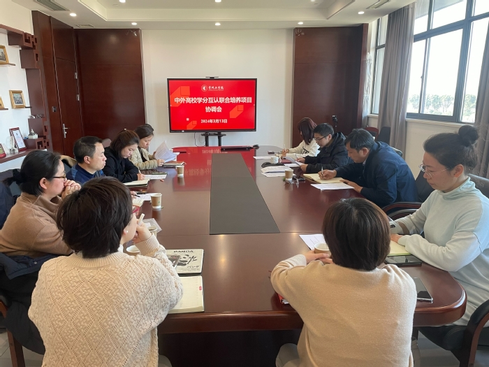 3月13日,国际交流合作处召开中外高校学分互认联合培养项目协调会,副校长苍玉权、教务处、学工处、外国语学院和艺术与设计学院相关人员参加了会议。