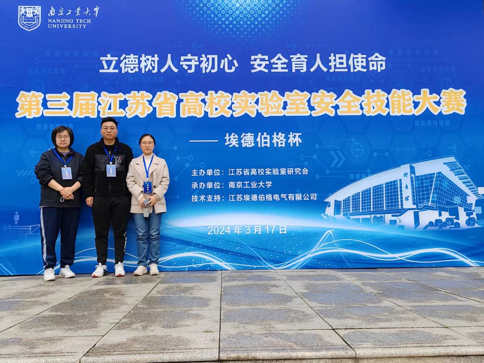3月17日,第三届江苏省高校实验室安全技能大赛(埃德伯格杯)在南京工业大学举行。共有67所省内高校参赛,我校由许鹏、王文娟和祝惠惠三位老师组成的代表队首次参赛,并荣获三等奖。