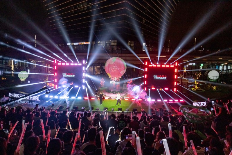 主办方选取了诸多热血励志、流行动听的热门歌曲,互动环节中精心穿插了国家安全主题的宣传短片和知识问答。开场以耳熟能详的《稻香》吸引了全场观众的目光,紧接着《少年中国说》表达了青年强胜则祖国安全的理念。第二阶段的《孤勇者》《无声的功勋》等歌曲向观众宣传国安战士的伟大付出,展示了国安战士不惧牺牲、迎难而上的精神。最后全场齐声合唱《我爱你中国》,将现场气氛推向了高潮。