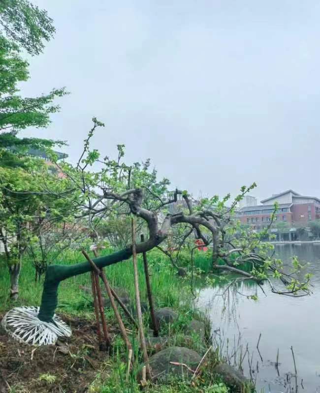 此次捐赠的两棵古树品质优良,古色古香。其中大红袍石榴树龄超100年,枝干粗壮有力,果实色泽明亮;龙爪柿树形奇崛苍劲,生机盎然。两棵古树特意种在天铭园中。天铭园由我校1978级校友集体捐资助力绿化升级,独具韵味,已成为校园标志性景观之一,亦成为我校校友与母校情深谊厚、携手致远的美好见证。这次,艺术与设计学院11位校友再续这段校友与母校同心同行的佳话,以百年古树祝福已承百年风华的母校续写华章、桃李芬芳。