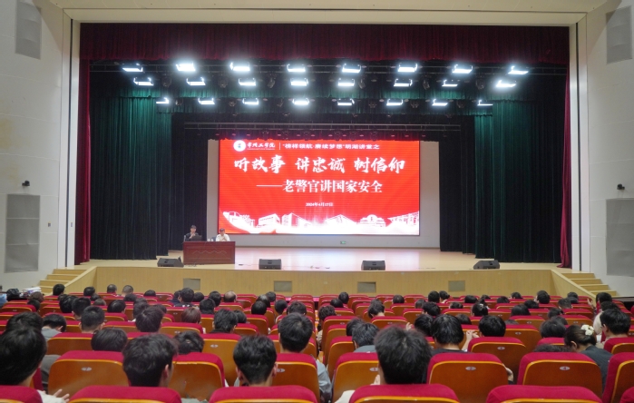 老警官通过讲述一个个鲜活的真实案例,结合国家安全方面的法律法规,为大家讲解了国家安全的基本内涵,诠释了一名共产党员的忠诚与信仰。他希望同学们能牢固树立国家安全意识,做到心中有信仰,肩上有担当,让青春与祖国同心,与时代同行,为维护国家安全贡献自己的青春力量。
