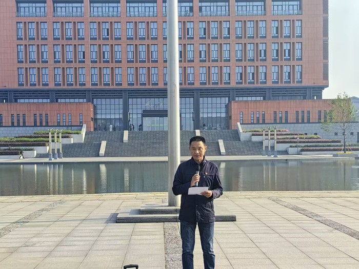 最后,院党委书记蒋渭忠做国旗下讲话。他要求党员干部要通过党纪学习教育做好学纪、知纪、明纪、守纪,鼓励广大学生要听从党和人民召唤,争当伟大理想追梦人,争做伟大事业的生力军,努力成为堪当民族复兴重任的时代新人,为中国式现代化建设和我校建设特色鲜明的一流应用型地方大学的目标贡献力量。