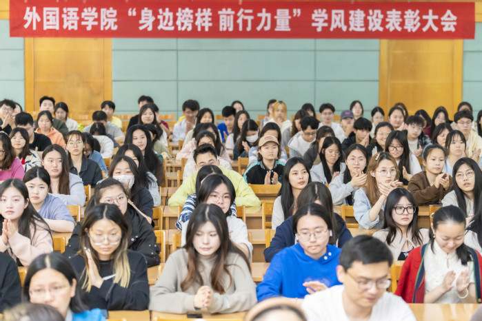 为持续推进优良学风班风建设,4月24日,外国语学院在巫山路校区1#227报告厅举行“身边榜样 前行力量”学风建设表彰大会。学院党政班子、专业系主任、辅导员、班主任、马克思主义学院青年教师、受表彰先进个人和先进集体代表以及2022级全体学生参加表彰活动。