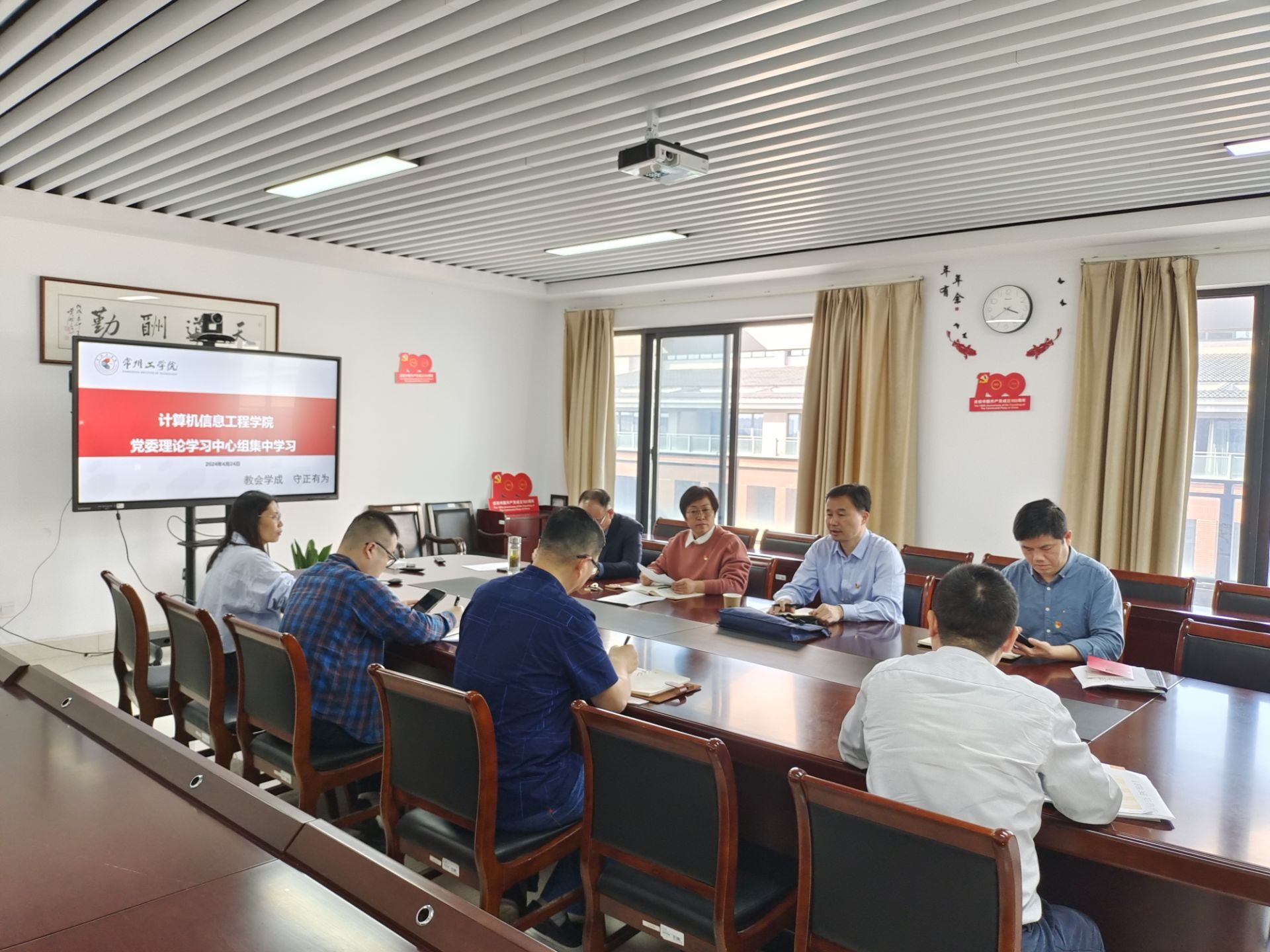 4月24日下午,计算机信息工程学院党委理论学习中心组开展集中学习研讨,围绕习近平新时代中国特色社会主义思想,深入学习领会新质生产力发展、习近平总书记关于民族工作的重要论述及《中国共产党巡视工作条例》。校党委常委、副校长刘春节巡学旁听并作指导,学院党委书记李晓芳主持会议,全体党委委员参加学习。