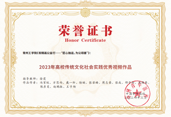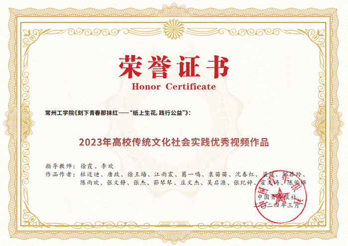 近日,由中国青年报社联合中国传统文化促进会道德文化应用工作委员会开展中华优秀传统文化进校园暨2023年高校传统文化社会实践视频作品征集展示活动获奖名单揭晓。我校电气信息工程学院“刻下青春那抹红——纸上生花,践行公益”团队和“炭精画公益行——匠心独运,为公翊善”团队获评优秀视频作品奖,这是两个团队获得2023年度团中央“镜头中的三下乡”表彰后的再次获奖。