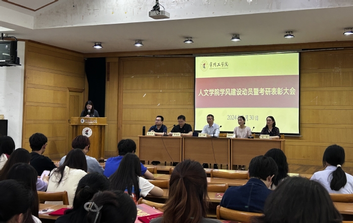 5月30日,人文学院在1#227召开2024年学风建设动员暨表彰大会。院党委书记吴健、院长谢燕红、党委副书记曹鸣谦、副院长岳芬、中文系副主任曹子男、全体辅导员、2024届受表彰考研学生以及各年级学生代表参加本次大会。会议由曹鸣谦主持。