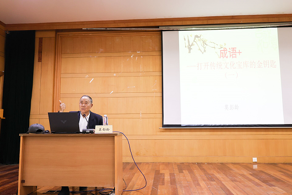 讲座中,莫彭龄旁征博引、循循善诱、诙谐风趣,不时与学生们展开互动交流,讨论热烈、气氛活跃,深受大家喜爱,极大激发了学生们学习成语、掌握成语、用好成语的热情。