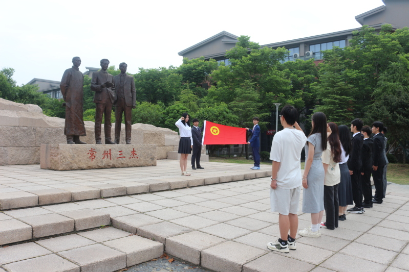 升旗仪式后,学院团委组织本学期新发展团员在三杰文化广场进行入团宣誓。