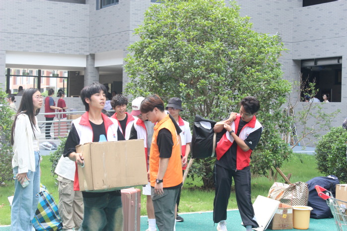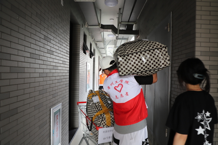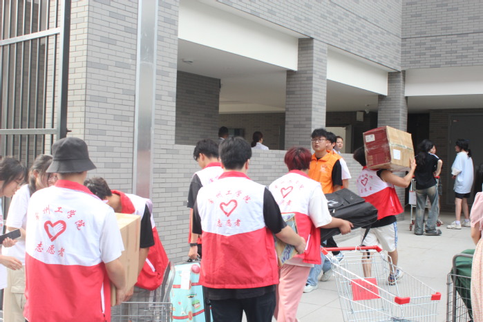 搬运现场,“红马甲”分工明确,协同配合,确保每个环节都能顺利进行。他们中有经验丰富的高年级志愿者,有条不紊地指挥着搬迁工作;有体魄强健的男生志愿者,他们不怕苦、不怕累,一趟又一趟搬运着沉重的行李,汗水湿透衣衫却丝毫没有影响热情与干劲;有细心周到的女生志愿者,她们认真帮助同学们整理物品、盘点行李,用细心和耐心给予同学们周到的帮助。“红马甲”的一举一动,无不传递着友爱和温暖,让同学们在搬迁的过程中感受到常工院这个大家庭的向心力和凝聚力。