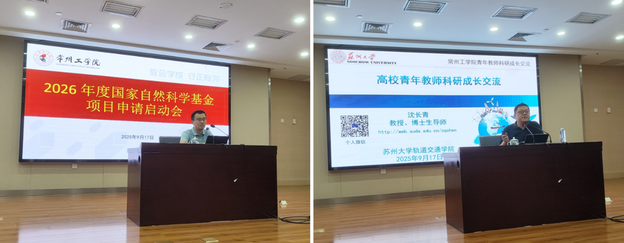苏州大学沈长青教授作为特邀专家,以“高校青年教师科研成长交流”和“自然科学基金申请书思路形成及其形式与逻辑”为主题带来精彩分享。在科研成长交流环节,沈长青结合自身科研经历,从青年教师如何找准研究方向、积累研究基础、搭建科研团队等方面分享经验,鼓励新教师立足学科特色,主动对接国家战略需求,逐步形成自己的科研优势;在申报书撰写指导环节,他聚焦申报书的核心逻辑,讲解选题的创新性与可行性分析、研究内容与技术路线的设计、预期成果与研究基础的匹配等关键内容,通过实际案例对比,直观展示优秀申报书的撰写技巧,帮助新教师理清撰写思路、提升申报书的规范性与竞争力。