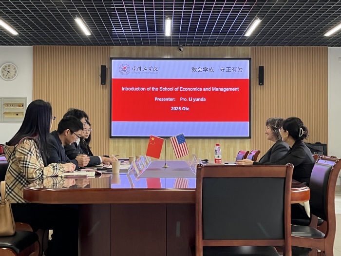 座谈中,国际交流合作处处长金中坤致欢迎词。经济与管理学院副院长(主持工作)李芸达介绍学院发展历程、办学规模、师资与学生发展情况,提出希望两校强化合作,共育具备全球视野与创新能力的会计国际人才。Mary Hoffman分享了过往中美学分互认联合培养项目的学生发展成果,表达了与经济与管理学院财务管理专业合作的信心。随行人员Yiliu Yang则介绍了威斯康星大学欧克莱尔分校的地理位置、校园环境、住宿生活及人才培养特色。
