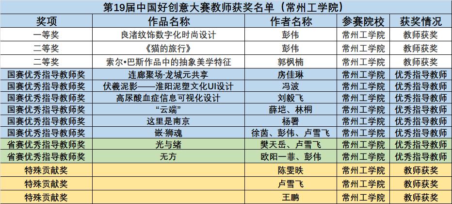 中国好创意暨全国数字艺术设计大赛教师获奖结果