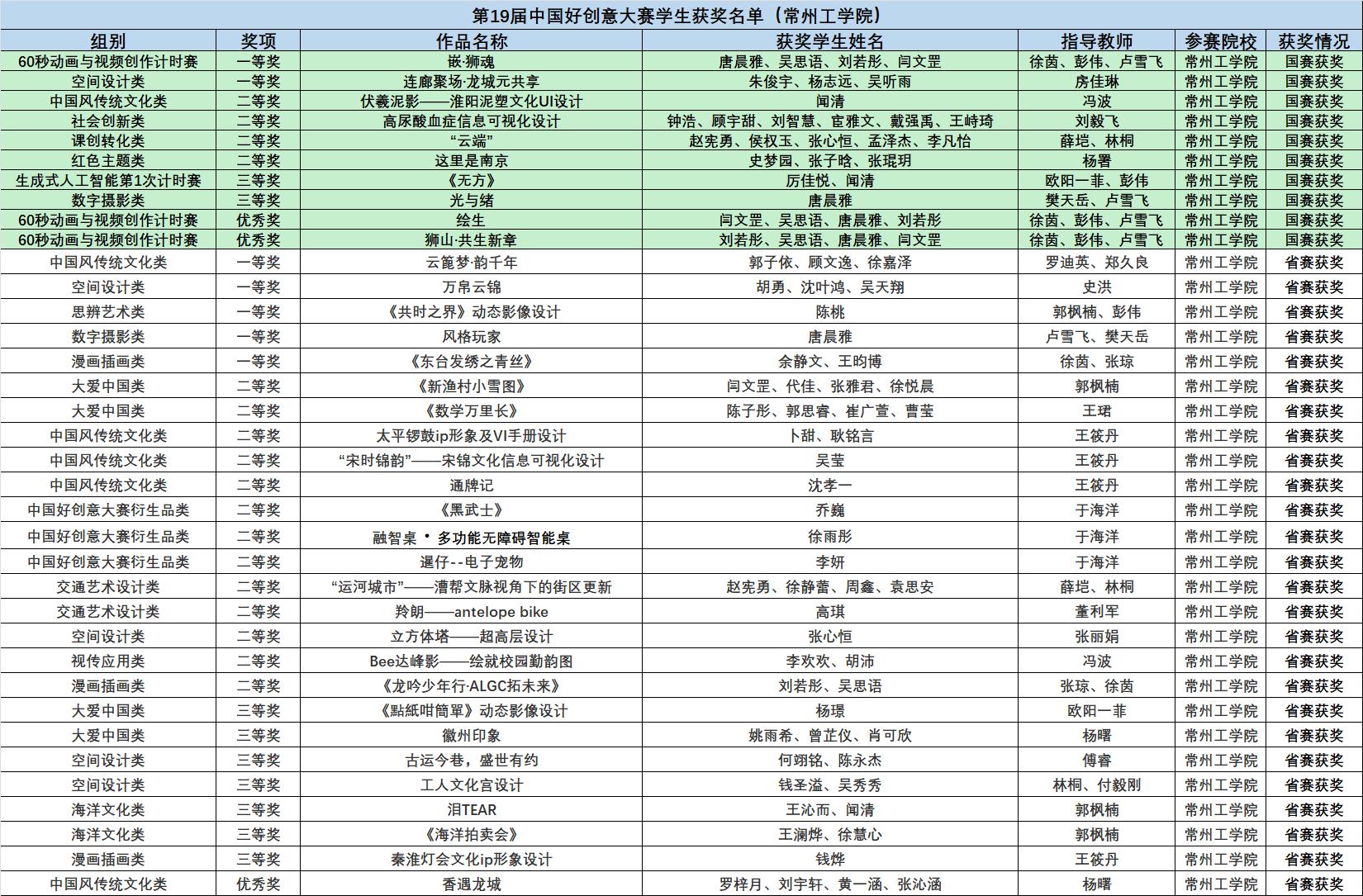 中国好创意暨全国数字艺术设计大赛学生获奖结果