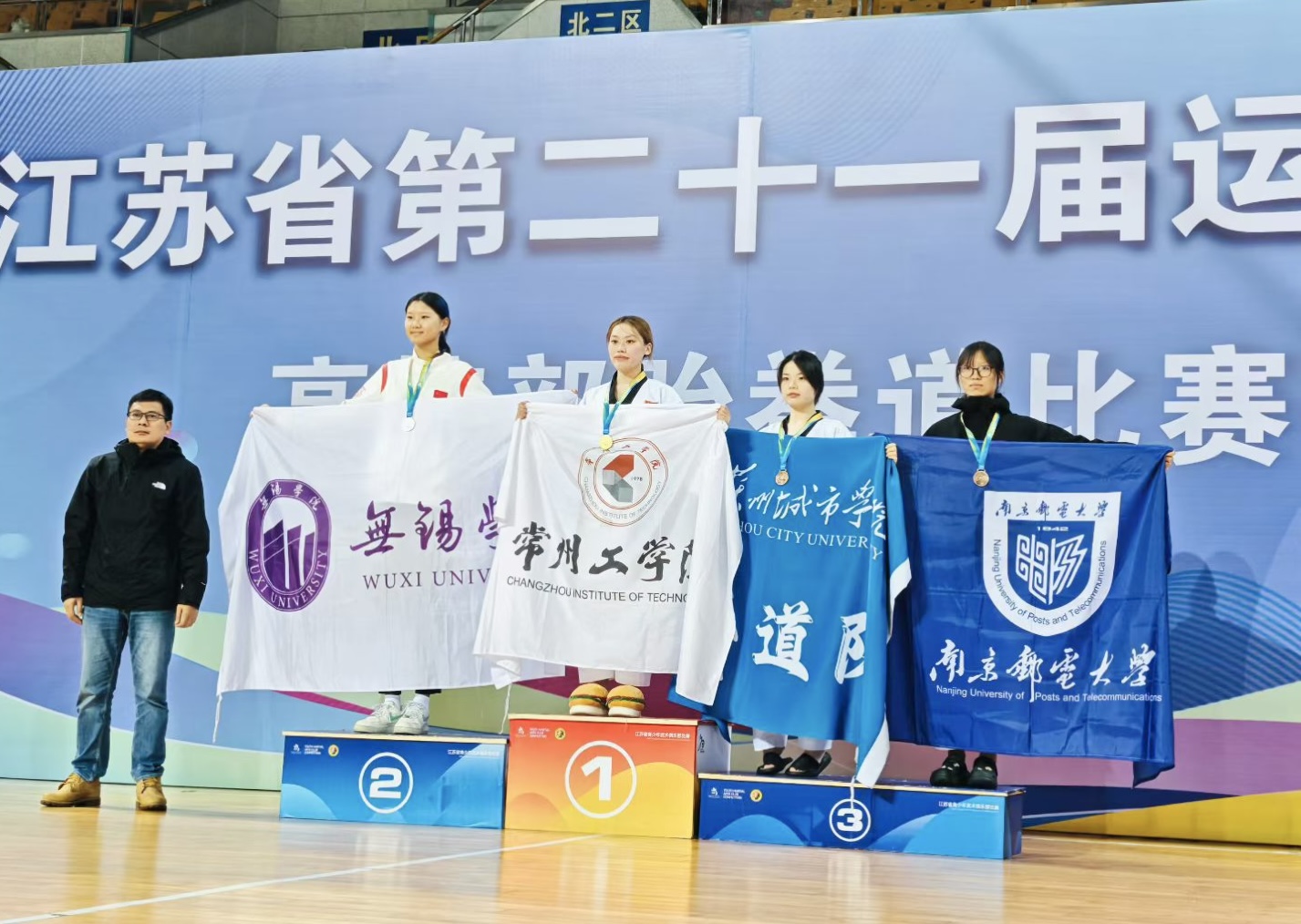 11月10日,江苏省第二十一届运动会高校部跆拳道比赛在江苏师范大学落幕。经过激烈角逐,我校经济与管理学院陈睿婕同学荣获甲B组女子72kg级冠军,为学校摘得一枚宝贵金牌。