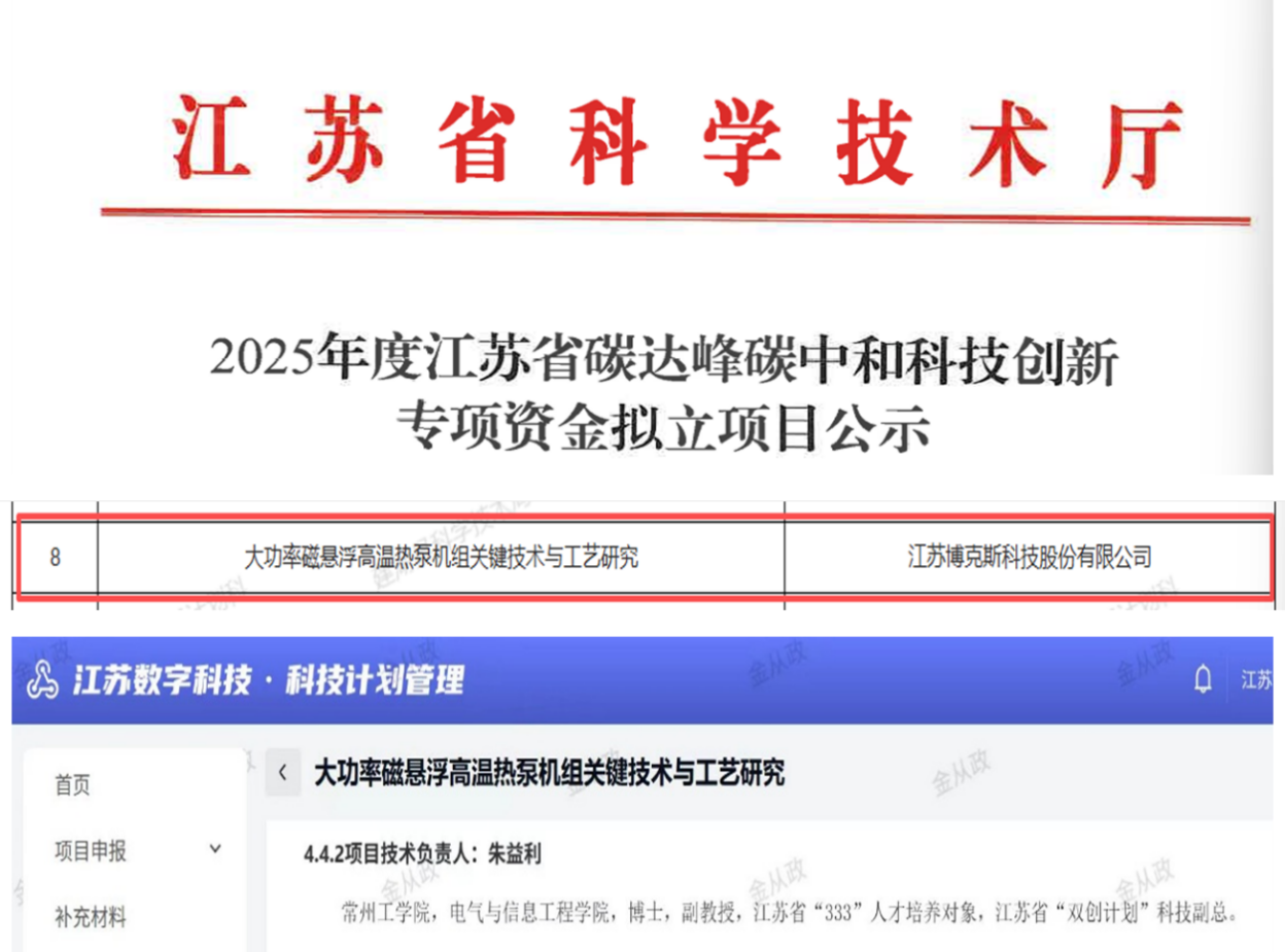 近日,江苏省科技厅公布2025年度江苏省碳达峰碳中和科技创新专项资金项目名单。我校作为合作单位、电气信息工程学院朱益利博士担任技术负责人申报的“揭榜挂帅”项目“大功率磁悬浮高温热泵机组关键技术与工艺研究”成功获批。这标志着我校磁悬浮科技创新团队的成套装备技术及应用水平再上新台阶。