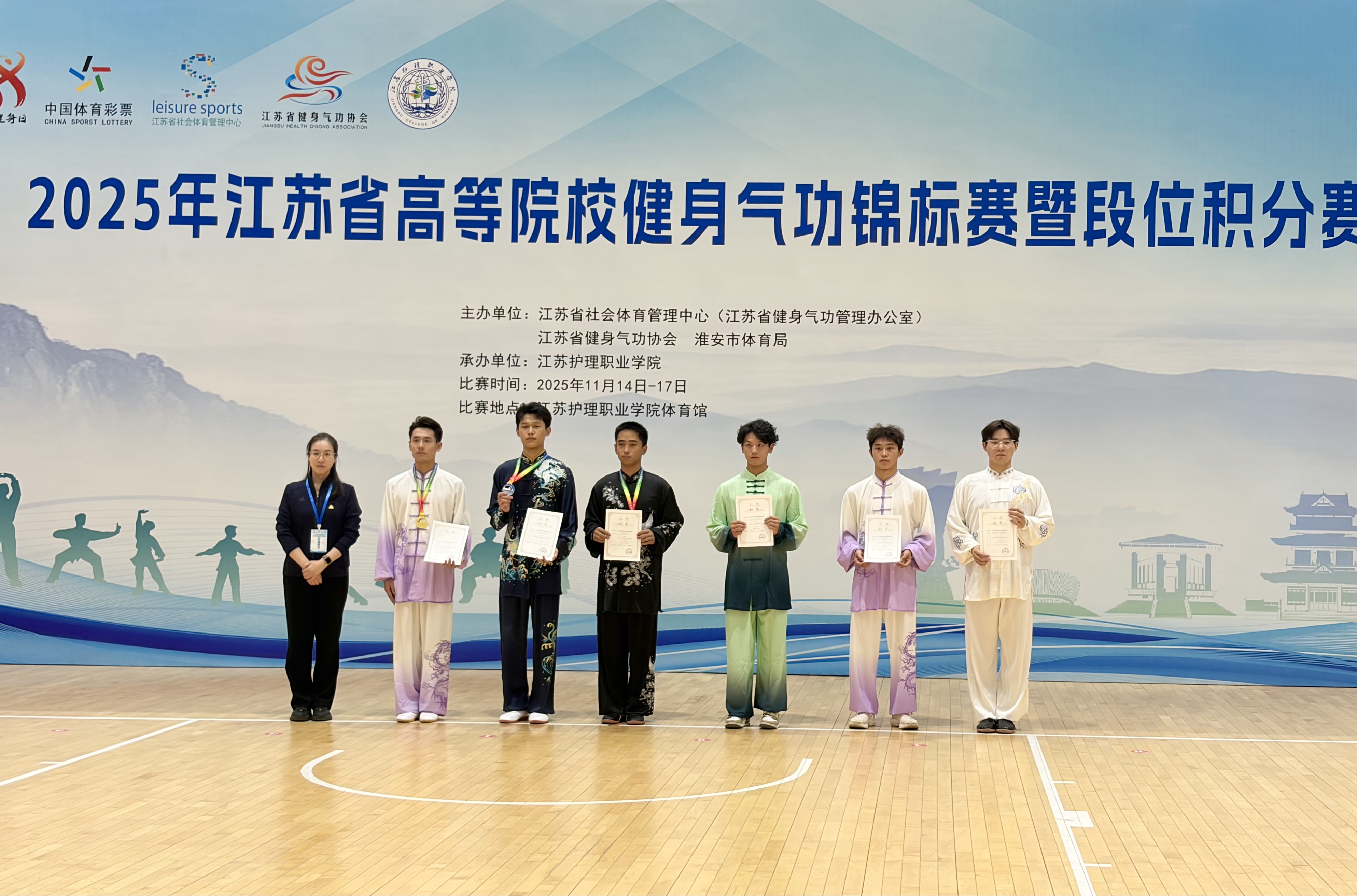 11月17日,江苏省高等院校健身气功锦标赛暨段位积分赛在江苏护理职业学院落幕。本次赛事由江苏省社会体育管理中心、江苏省健身气功协会、淮安市体育局主办,江苏护理职业学院承办,全省57支高校代表队260名运动员角逐11个项目38个小项。