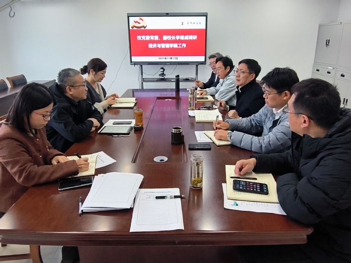 11月17日,校党委常委、副校长李雄威带队调研经济与管理学院,社科处处长何虹、研究生处处长张燕红陪同,学院全体领导班子参会座谈。
